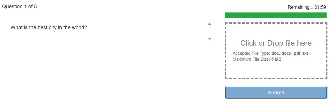 For attachment responses, upload your file in the specified area. Only accepted file types are allowed; otherwise, an error message will appear.