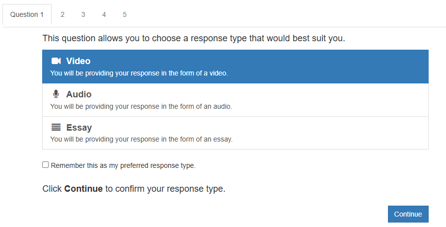 In some cases, you may have the option to select your preferred response type. If this option is available, you may use the checkbox to designate this preference for all subsequent questions.