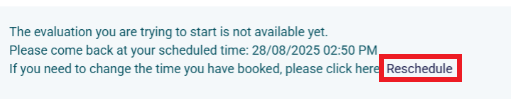 - For all other assessments, your current booking must commence at least 24 hours from now.
