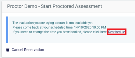 - For all other assessments, your current booking must commence at least 24 hours from now.