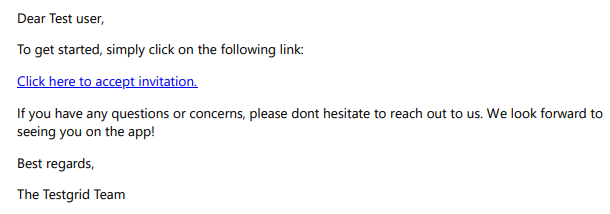 - A link to accept an invitation to join the Testgrid Scheduler platform