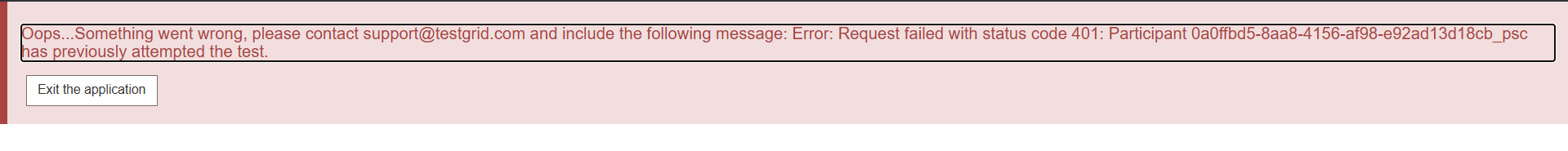 Please follow the steps below if you are receiving this error message when logged into the Testgrid platform: